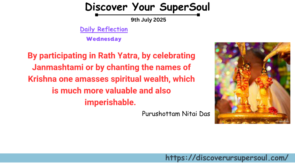 - By participating in Rath Yatra, by celebrating Janmashtami or by chanting the names of Krishna one amasses spiritual wealth, which is much more valuable and also imperishable.