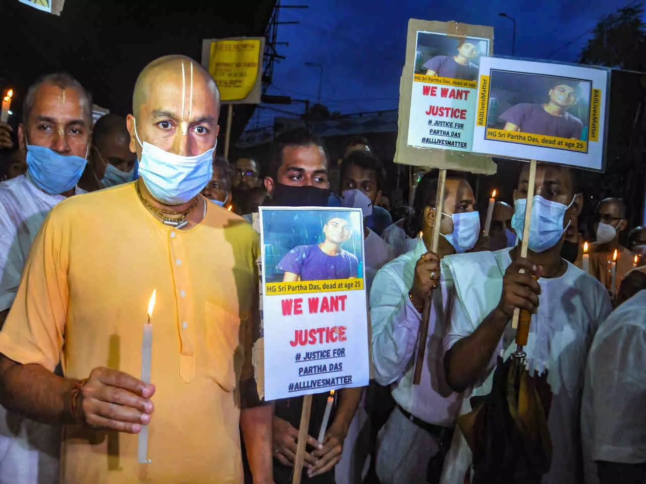 Iskcon devotees also protested in Siliguri, West Bengal with a torch rally.