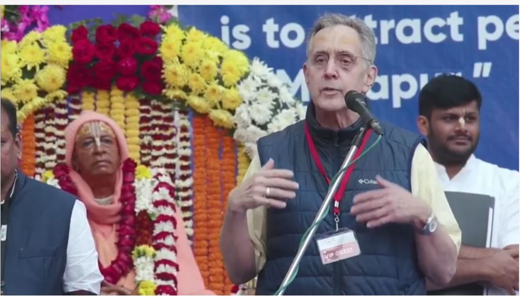 Ambarish Prabhu, a disciple of Srila Prabhupada, is the chairman of TOVP. He is the great-grandson of Henry Ford. It is because of his efforts that this magnificent temple, an architectural marvel, is wonderfully manifesting. In his address, HG Ambarish Prabhu thanked all the devotees who have been putting their best efforts to build the temple. He welcomed all the devotee community for enthusiastically participating in the Pujari room opening event.