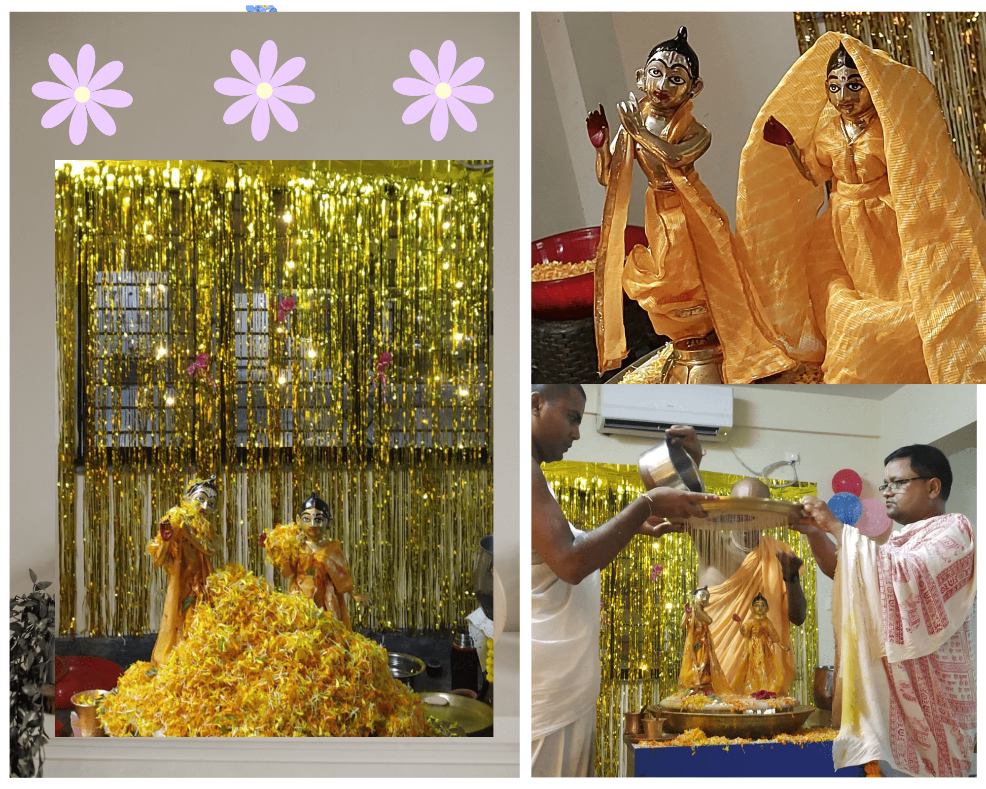 For abhishek, we needed a deity of Lord Krishna and Srimati Radharani. I requested in the temple for the deities. HG Vrindavan Chari Prabhu and Shivaji Prabhu helped to arrange a beautiful deity of Sri Sri Radha Madhav.