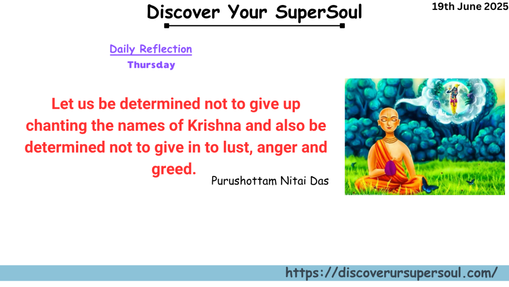 So, let us be determined not to give up chanting the names of Krishna and also be determined not to give in to lust, anger and greed.