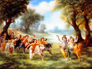 Mother Yashoda goes calling Krishna when he does not return home