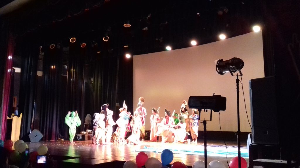 Participation of kids made the event colourful. Be it anchoring or dance or drama or songs the little armies of Lord Rama led from the front. As cute little monkeys they were carrying big rocks on which in big letter “RAM” was written to build the bridge on the ocean. They were enthusiastically throwing the rocks in the ocean while loudly chanting Jai Shree Ram! Their enthusiasm even enthused hundreds of audience to chant Jai Shri Ram!