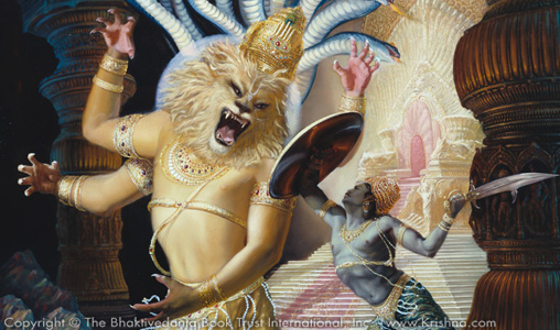 His cunning mind had convinced him that he can attain immortality and enjoy in this world unlimitedly for eternity. The greedy senses always forced Hiranyakasipu to acquire more and more material opulence.
